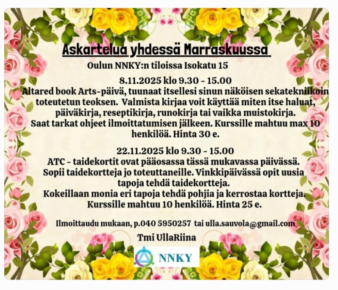 Kysy tapahtuman järjestämistä juuri teille. Tulen mielläni ohjaamaan teitä luovuuteen roskakirjojen kanssa.